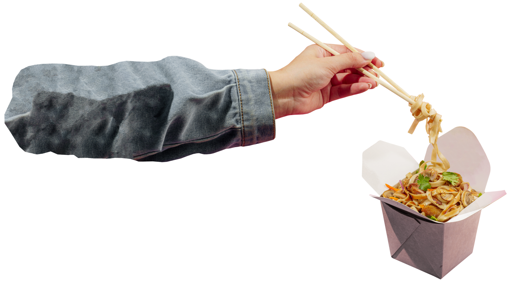Лапша удон, морковь, грибы шампиньоны, пекинская капуста, лук красный, кинза, кунжут, соус
